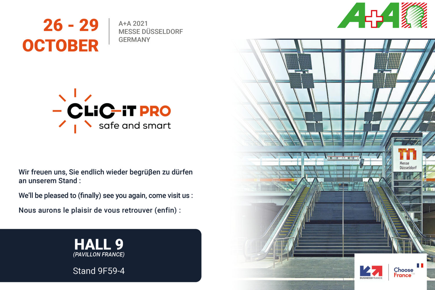 Du 26 au 29 octobre 2021, CLiC-iT sera présent au salon A+A 2021 à MESSE DÜSSELDORF en Allemagne.